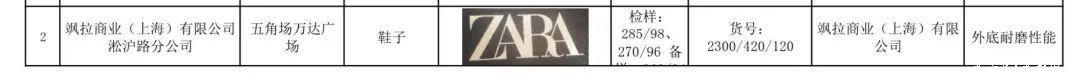 抽检恶果裸露,1批次飒拉生意(上海)有限公司淞沪路分公司在五角场万达广场销售的标称由飒拉生意(上海)有限公司坐蓐(或供货)的“ZARA”牌鞋子(型号规格:检样:285/98、270/96 备样:260/94;货号:2300/420/120),外底耐磨性能实测为磨痕长度左:16.6、右16.6(圭臬值应≤14.0),与圭臬条款不符。该技俩不对格,鞋底过度磨损变形,影响欢跃感和防滑性能,导致不测滑倒。