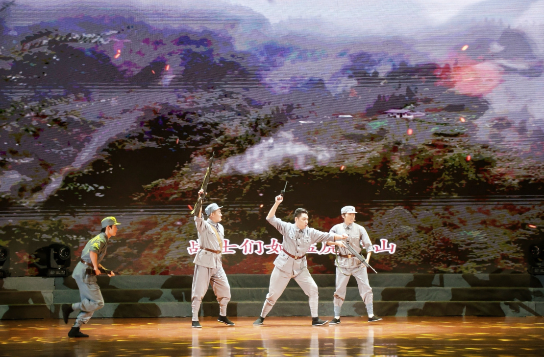《华南焰火 抗战丰碑》是“2025红色文化轻马队:重走抗战之路”活动尽心打造的红色主题音诗舞剧,乔建军、熊念念嘉等多位国度一级演员领衔、40余名演员携手倾情献技,通过情状再现、朗读、跳舞等音诗舞剧的神色,将华南敌后抗战的壮阔历史娓娓谈来。