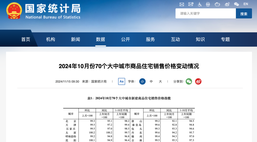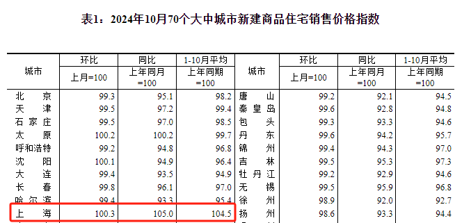 数据露馅,70个大中城市中,2024年10月新建商品住宅销售价钱环比高涨的城市有7个(上海、深圳、太原等),下降的城市有63个。